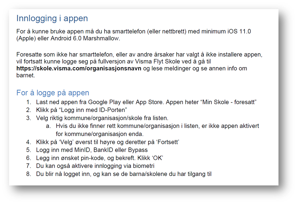 Vi anbefaler alle å laste ned appen Min Skole – Foresatt, til sin smarttelefon (se oppskrift i vedlagt fil). I appen kan du bl.a. motta og sende meldinger til skolens ansatte og SFO, registrere fravær, se time- og oppholdsplan, besvare samtykker m.m.